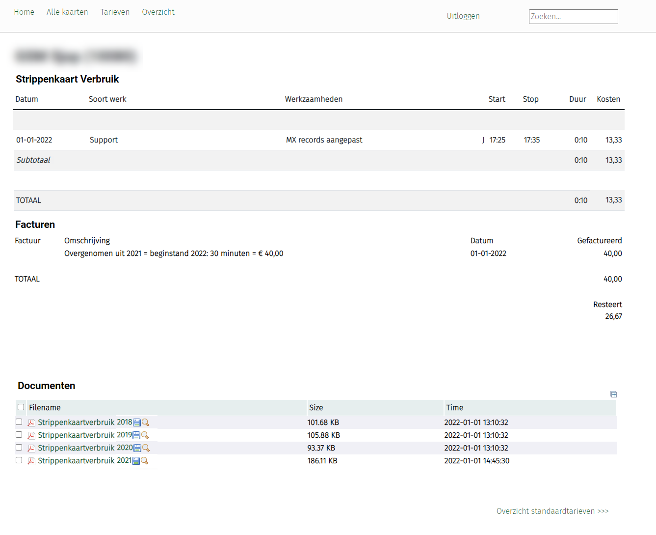 De klant wordt met een maatwerk-plugin nadat hij inlogt in het strippenkaartsysteem naar zijn eigen kaart doorgestuurd en heeft hierdoor direct inzicht in de werkzaamheden, resterende uren en facturen.